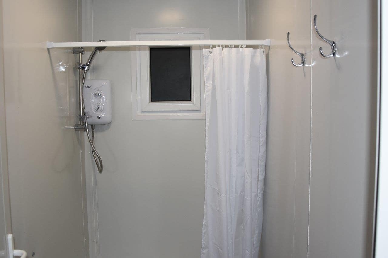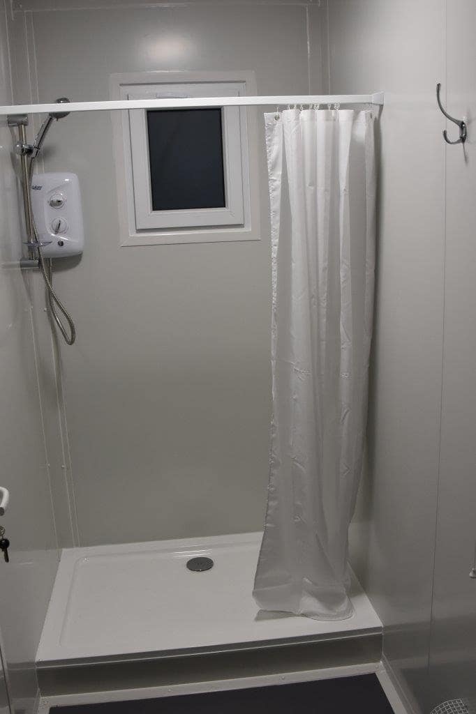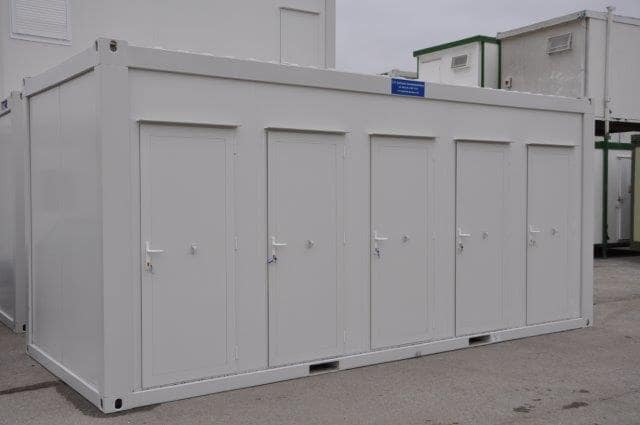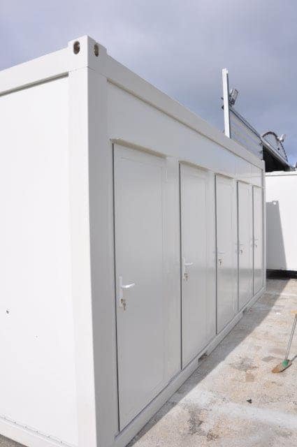 20′ x 8′ Building with three separate unisex toilet areas and two unisex shower areas. – Ideal for camp site.